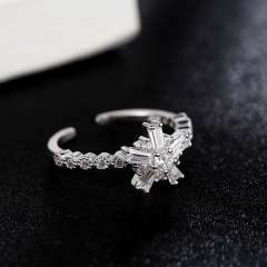 925 silver snowflake ring female Korean version of the fashionable women set inlaid zircon zircon silver jewelry