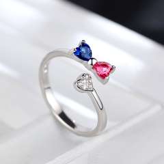 925 sterling silver rings | female models Korean fashion bow opening inlaid zirconium color zircon silver ring silver jewelry