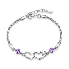 925 silver bracelet bracelet | female birthday Korean sweet and pure mosaic zircon double heart bracelet