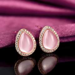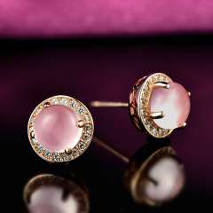 925 silver female Korean version of the rose gold Furong stone natural powder crystal earrings silver ear jewelry |