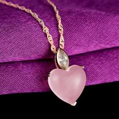 925 silver natural crystal heart-shaped Furong stone powder crystal pendant female | Korean version of the rose gold accessories necklace direct