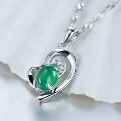 925 silver green chalcedony necklace | female pendant heart-shaped green jade silver pendant fashion accessories