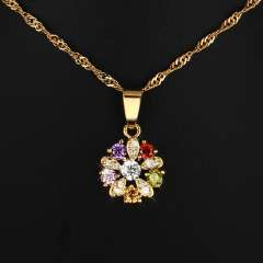 Fashion European and American jewelry Austrian crystal five leaf flower pendant | gold-plated pendant with chain