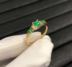 18k gold emerald ring, the main stone weighs about 15 minutes. There are 3 emeralds on both sides, and the green and melodious colors are more complex.