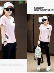 FANSHI leisure sports suit female summer Korean version 2019 women's slim trousers sportswear summer short sleeve two sets of tide