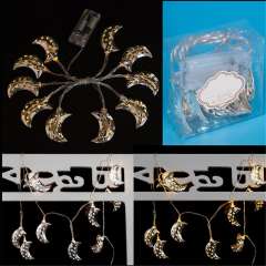10 LED Silver Metal Metallic Moon String Lights Ramadan Decor Battery Operated