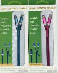 手机配件40cm手机充电数据2合1微拉链USB电缆