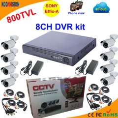 8通道DVR套件与索尼800tvl子弹式摄像机