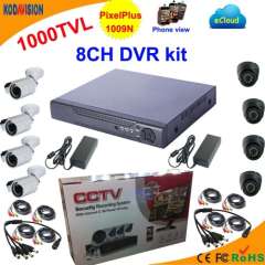 8通道DVR套件与CMOS 1000tvl球型摄像机