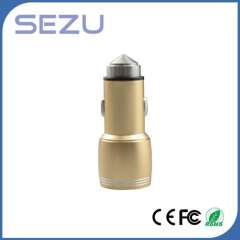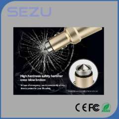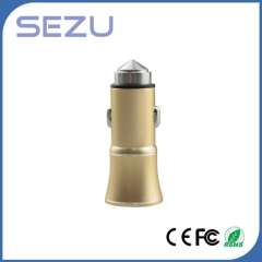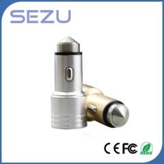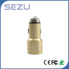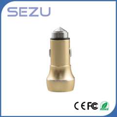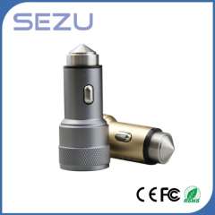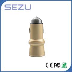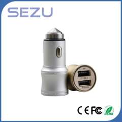Best Sales Newest Design Dual USB Aerometal Car Charger with safety Hammer for Mobile Phone