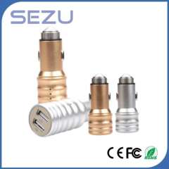 Free Sample USB Car Charger Metal 2 in 1 Cell Phone Car Charger