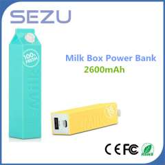 2015 New Design Milk Box Shape 2600mAh Power Bank Mini Power Bank