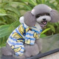 冬季宠物黄鸭打印软毛绒大衣四脚连帽衣服