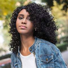 Medium Side Bang Black Afro Curly Impressive Synthetic Hair Wig for Women