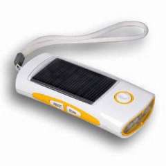 Solar FM Radio with Superbright LED Flashlight and Solar Panel, Measuring 13.5 x 6.2 x 2.8cm