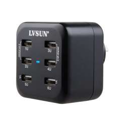 34W 6端口USB旅行充电器与可交换插头,适用于iPhone,iPad,手机