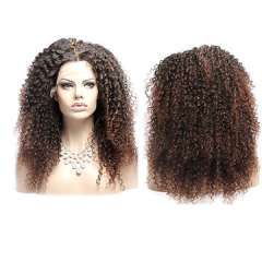 长双色颜色卷发蓬松中心分离合成花边前假发