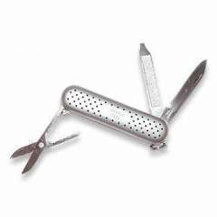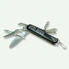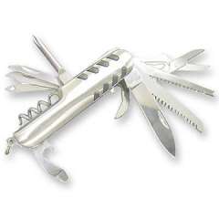 多功能袖珍刀。不锈钢手柄带橡胶衬里