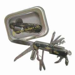 多功能小刀在窗口锡盒,测量9 x 6.4 x 2.6厘米