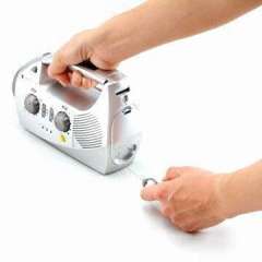 发电机AM / FM收音机与LED手电筒,报警警报器,手机充电器和LED时钟