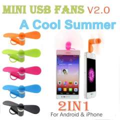 Hot Selling 2 in 1 Mini Fan Two Leaves Portable Mini USB Micro Plug Pocket Fan for OTG Android Phones and Other USB Port Devices