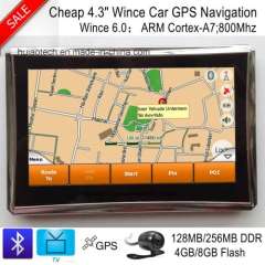 便携工厂出售4.3'汽车Portablet Satnavi GPS导航仪内置128MB RAM 8GB闪存支持蓝牙,ISDB-T;后视摄像头AV-in; GPS导航