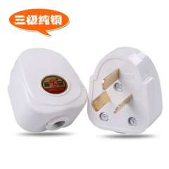 批发 | 纯铜10A三极插头 | 阻燃白色三极插头 | 每盒20个装 | 嘉冠-031