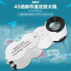Beisite 45 times magnifying glass with LED white violet scale identification stamps coins Wen play printing outlets