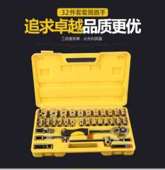 汽车摩托车维修铬钒钢CRV组装 棘轮快速扳手32件套套筒