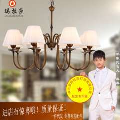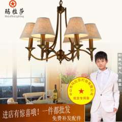 Living room bedroom imitation copper chandelier | European-style rural dining room bedroom fabric cover lighting |