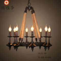 Wholesale Lighting | Iron Retro hemp rope chandelier | Scandinavian personality bar room villa decoration 6 chandeliers