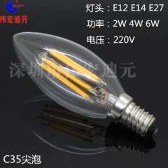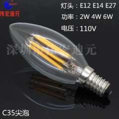C35 110v Edison tungsten filament lamp | e12 sharp bubble retro candle light | led glass bulb filament lamp