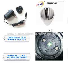 Rechargeable Cree LED flashlight, waterproof, advanced optical system design