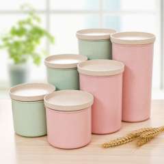 天然小麦秸秆可叠加密封罐环保加厚五谷杂粮收纳罐厨房食品储物罐