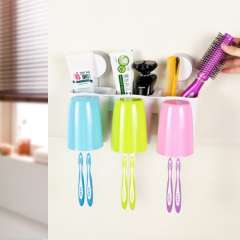 三口之家洗漱套装创意壁挂吸盘牙刷架漱口杯吸壁式牙膏牙具刷牙杯