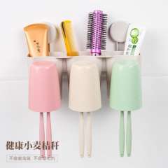 小麦秸秆三口之家超大容量洗漱套装创意壁挂吸盘牙刷架牙膏牙具杯