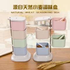 四层调味盒立式可旋转调料盒厨房创意调味罐简易环保小麦秸秆调味