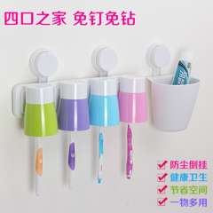卡通吸盘牙刷架洗漱套装小麦四口之家吸壁式创意壁挂牙膏漱口杯