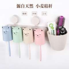 小熊卡通小麦秸秆吸壁式三口之家洗漱套装小麦漱口杯刷牙杯牙具杯