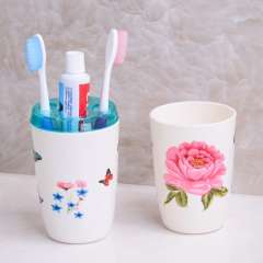 新品彩蝶花浴室二件套装 | 圆形刷牙杯 | 环保漱口杯 | 塑料卫浴套装