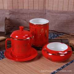 陶瓷功夫茶具套装过滤中国红瓷厂家直销批发结婚促销礼品定制LOGO