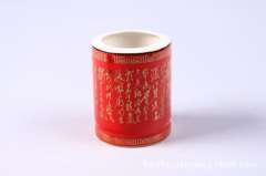 中国红瓷将军杯陶瓷盖杯骨瓷办公茶杯高档祝寿礼品定制logo福寿杯