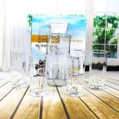 Factory wholesale octagonal glass cold water bottle five-piece ripple / penguin water with three-piece glass 1.1L
