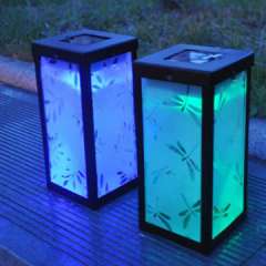 装饰太阳能金属灯笼与蝴蝶阴影和蓝色光