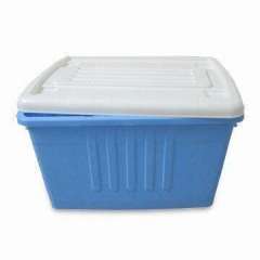 PP家用储存容器在蓝色,测量40 x 29 x 20.5厘米