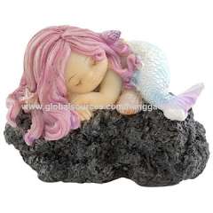 收集微型的仙女花园和岩石雕像睡在岩石上的小美人鱼雕像