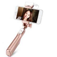 新款玫瑰金LED灯3.5mm音频线不锈钢防滑有线自拍杆,自定义标志