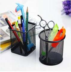 Korea creative stationery | fashion circular iron mesh rust-proof pen holder | desktop storage tube | wholesale