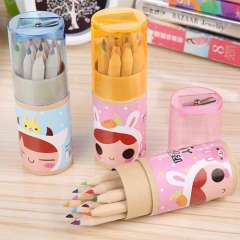 Korean version of the lovely cartoon rabbit girl color pencil 12 color children's lead cartoon cartridge with a pencil sharpener wholesale