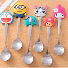 Cute silicone handle stainless steel spoon | fashion cartoon spoon | coffee stirring spoon